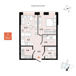 Вас ждёт бескомпромиссный комфорт с индивидуально подобранными застройщиком резидентами коммерческих пространств, первая в городе 2-уровневая набережная вдоль русла Второй речки и 58 200 квадратных метров паркового благоустройства в рамках глобального редевелопмента территории.