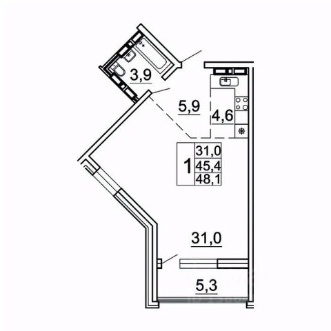 • ✅ Минимальная площадь: 48,1 м²