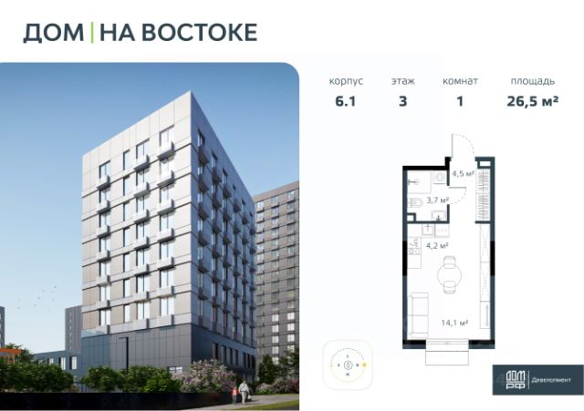 DNV-06-01-02-004-004 Светлая уютная студия с большим санузлом в жилом комплексе "ДОМ на Востоке". Общая площадь 26,7 м2. Срок сдачи 2 кв. 2025 г. Монолитный дом. "ДОМ на Востоке" жилой квартал с авторской архитектурой от известного бюро KAMEN, благоустроенной территорией и собственной развитой инфраструктурой. Это флагманский проект от государственного застройщика ДОМ.РФ Девелопмент, расположенного в сердце живописной бухты Патрокл. Проект находится в перспективном, быстроразвивающемся районе города со всей инфраструктурой на берегу залива. Всего 8 минут пешком и вы на Леопардовой набережной совершаете променад или любуетесь завораживающими закатами и рассветами. До центра города и крупных торговых центров легко добраться за 20 минут на автомобиле. Преимущества лота - Эргономичная планировка - Высокий потолок 2,9 м - Большой совмещенный санузел 4,9 м2 - Корзина для кондиционера - Ниша для встроенного шкафа Отделка: Квартира сдается в черновой отделке. Инфраструктура На первых этажах домов будет все необходимое для жизни: магазины, кафе, аптеки, салоны красоты и многое другое. А для семей с детьми предусмотрены детские сады, безопасные игровые площадки и игровые комнаты. Паркинг: подземный отапливаемый с видеонаблюдением Для удобства жителей комплекса предусмотрен теплый паркинг в доме. Теперь не придется искать место для парковки, а также чистить автомобиль от снега или прогревать его в холодное время года. В паркинге также расположены кладовые помещения для хранения сезонных вещей и спортивного инвентаря. Условия покупки Продажа от надёжного государственного застройщика ДОМ.РФ Девелопмент с использованием эскроу-счетов. 100% оплата или ипотека. Сейчас действуют особые предложения по льготной ипотеке на период строительства.
