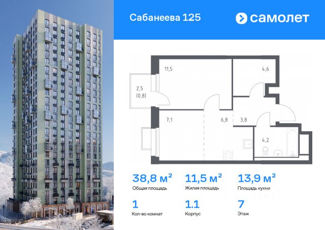 Строим кварталы для жизни с заботой о будущем. Предлагается 1-комнатная квартира комфорт-класса 38,8 кв.м в корпусе 1.1 на 3 этаже, в ЖК "Сабанеева 125" Квартира без отделки. Доступность опции "отделка" и возможность комплектации мебелью и декором уточняйте у застройщика. Приобрести квартиру возможно по специальным акциям от застройщика, с текущими условиями акций можно ознакомиться в блоке "Акций". Цена динамическая и может отличаться, уточняйте актуальность у застройщика. В жилом комплексе "Сабанеева 125" вы ежедневно будете наслаждаться видами сопок. Холмистый рельеф защищает территорию от ветра. Комплекс расположен в Первореченском районе Владивостока, всего в 20 минутах на машине до центра города. На первых этажах откроются супермаркеты, кафе и пекарни. Для малышей — детский сад в 2 минутах пешком и школа в 10 минутах. За 6 минут можно доехать до Нагорного парка, а за 15 минут — до набережной Цесаревича с панорамой Золотого моста. Комплекс состоит из 3 монолитных домов высотой 25 этажей с фасадами, дизайн которых вдохновлен птицами Дальнего Востока. Дворы оформлены как сад с дальневосточной флорой, есть смотровые площадки, скалодром, перголы и игровые зоны для детей. Подземный паркинг — трехуровневый. В сквозные подъезды без ступеней и с помещением для колясок удобно заходить. В жилом комплексе "Сабанеева 125" есть квартиры с индивидуальными зелеными террасами, увеличенными окнами и панорамными балконами для чаепитий с видом на сопки и залив.
