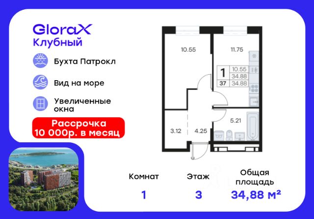 Продается 1-комн. квартира на 3-м этаже в квартале GloraX Клубный. GloraX Клубный - уникальный видовой проект с выделяющейся архитектурой в развитом районе Владивостока. Общая площадь лота составляет 32,46 кв. м, из которых 9,65 кв. м отведено под жилую и 11,93 кв. м под кухонную зону. Номер квартиры - 239. Преимущества квартиры: однокомнатная квартира. Преимущества проекта: • Квартиры с панорамными видами на бухту Патрокл, маяк Басаргина и остров Русский • Планировочные решения под любой жизненный сценарий от 23 до 67 м² • Гардеробные комнаты, увеличенные панорамные окна, просторные кухни-гостиные • Эксклюзивное благоустройство: продуманное зонирование, игровые и спортивные площадки, площадка для стритбола, амфитеатр • Премиальный дизайн входных групп с лаунж-зоной • Безбарьерная среда, закрытая территория, видеонаблюдение • Лапомойки, колясочные и туалеты на первом этаже • Двухуровневый подземный паркинг на 350 машино-мест с лифтом на жилые этажи • Келлеры на цокольном этаже для хранения сезонных вещей с доступом на лифте • Современный ландшафтный дизайн комплекса от DEREVOPARK GloraX Клубный заповедник в черте мегаполиса. Комплекс тщательно продуман для максимального удобства и обеспечения безопасности его жителей. Квартал расположен в одном из самых современных развивающихся районов города: совсем рядом раскинулась живописная бухта Патрокл, где можно прогуляться по облагороженной пешеходной набережной, заглянуть на пляж или в школу серфинга. Комплекс имеет прекрасную транспортную доступность: рядом проходит объездная трасса СеданкаПатрокл, а до центар можно доехать всего за 15 минут. Проект включает 3 монолитных корпуса, каждый из которых спроектирован с акцентом на комфорт, безопасность и современный образ жизни рядом с уникальной природой. Общий двор создает приватную территорию для житей комплекса. В комплексе предусмотрен двухуровневый подземный паркинг на 350 машино-мест с доступом прямо с жилых этажей. Паркинг оборудован современными системами видеонаблюдения, контроля въезда-выезда и пожаротушения. На цокольном этаже размещаются келлеры для хранения сезонных и габаритных вещей. Доступ к кладовым на лифте с жилых этажей. Современный ландшафтный дизайн жилого комплекса GloraX Клубный создан ведущей российской студией DEREVOPARK. Во дворе для детей всех возрастов предусмотрены различные игровые площадки с лазалками, батутами, качелями и песочницей. В центре расположен специальный "зеленый остров", где взрослые могут отдохнуть на качелях и гамаках в тени больших деревьев. Для любителей спорта предусмотрены две специальные спортивные площадки для настольного тенниса и стритбола — для зрителей тоже найдется место! А еще на территории комплекса будет дорожка для роллеров и любителей покататься на велосипеде, самокате или скейте. В шаговой доступности располагаются все необходимые объекты социальной и коммерческой инфраструктуры. Цена указана при 100% оплате или ст