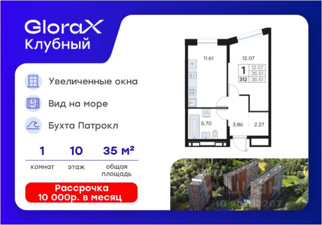 Продаётся 1-комн. квартира площадью 32,8 кв.м на 10 этаже 28 этажного дома (Корпус 2, Секция 2) проекта ПИК Борисенко 48. Светлый просторный подъезд на уровне земли, функциональная планировка, большие окна, предчистовая отделка. "Борисенко 48" - небольшой квартал в Первомайском районе, в 15 минутах пути на автомобиле от центра Владивостока. С верхних этажей откроется живописный вид на город и сопки. В проекте всего четыре дома и подземный паркинг, в который можно будет спуститься на лифте. Высота домов от 17 до 30 этажей - благодаря переменной этажности солнце будет лучше освещать двор и квартиры. На первых этажах откроются пекарни, кафе, магазины и другие сервисы - это удобно, когда внезапно закончится хлеб или захочется побаловать себя горячим кофе. Из каждого дома будет выход в уютный двор-парк - это закрытая территория для отдыха, где растут цветы и деревья, оборудованы детские и спортивные площадки. Рядом с "Борисенко 48" появится также детский сад для 150 малышей. В пешей доступности есть всё необходимое для комфортной жизни: школы, детские сады, поликлиника и магазины. До крупных торговых центров "Калина Молл" и "Луговая", а также супермаркета "Реми" - всего 5 минут на машине. А до озера на Сафонова, которое отлично подходит для прогулок и отдыха, можно дойти пешком за 9 минут. Живописная Леопардовая набережная - в 10 минутах на автомобиле. Из квартала можно будет выехать как на улицу Борисенко, так и на улицу Сафонова. Артикул 918482 (Застройщик ООО "СЗ "Юстина")