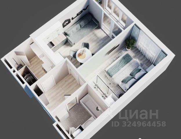 - Квартира с полностью готовой современной отделкой в светлых тонах.