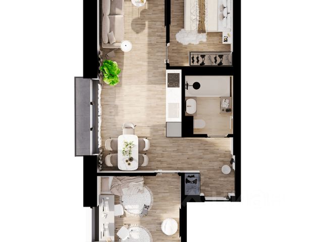 - Квартира с полностью готовой современной отделкой в светлых тонах.