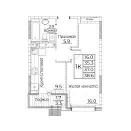 Общая площадь квартиры — 38.6 кв. м, этаж 11 из 23.