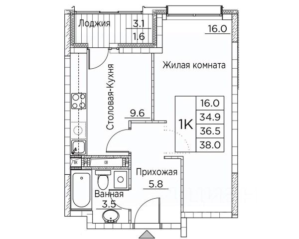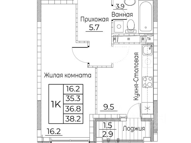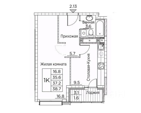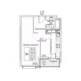 Общая площадь квартиры — 38 кв. м, этаж 12 из 20.