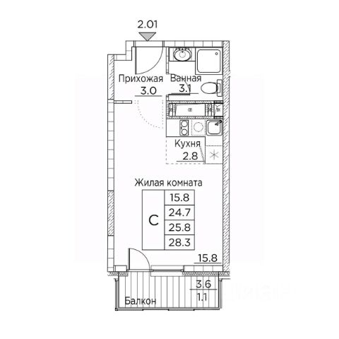 • ✅ Минимальная площадь: 23,8 м²
