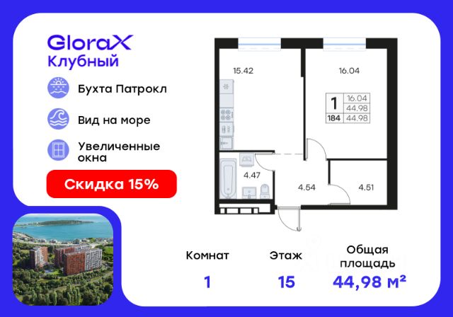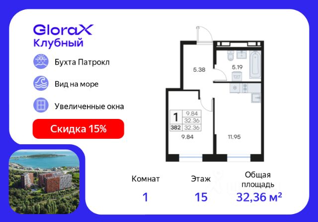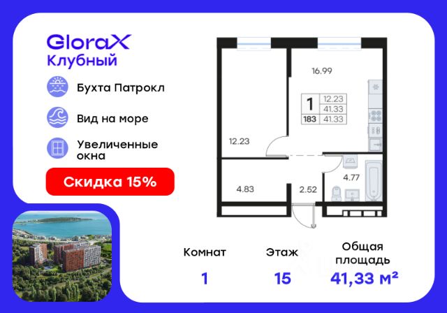 Продажа 1-комнатных квартир на 15 этаже в микрорайоне Патрокл в городе Владивосток