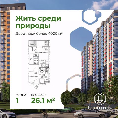 ЖК Гринхилс жилой квартал комфорт-класса в выгодной локации микрорайона Зеленый угол, развивающегося современного жилого кластера во Владивостоке, внутри которого реализуются проекты нового поколения, преобразуя город. Полный набор необходимой инфраструктуры, транспортная доступность, исторические места города в шаговой доступности, а также окружение леса - все это и есть современный Зеленый угол. - 15 минут до центра; - 17 минут до ж/д вокзала; - 10 мин до пляжа Патрокл*; - 30 минут до автовокзала; - 50 минут до аэропорта; - *В конце 2025 года планируется ввод дороги, соединяющей район с объездной Седанка-ДеФриз-Патрокл; Плановый ввод в эксплуатацию: - 1 корпуса - 2 квартал 2026 года; - 2 и 3 корпусов 2 квартал 2027 года; Современные архитектурные и инженерные решения, повышающие качество вашей жизни: - приватный безопасный каскадный двор-парк площадью более 4000м2, спроектирован как отдельный архитектурный объект с зонами, включающими в себя целый комплекс оборудования для детей и взрослых, озеленением и современным освещением, благодаря которому будет приятно гулять и отдыхать во дворе в вечернее и ночное время; - доступ на территорию всего ЖК только для вас и ваших гостей; - видеонаблюдение по периметру всего ЖК; - безбарьерный доступ в дом с обеих сторон; - современная домофония; - дизайнерская отделка мест общего пользования, чтобы было приятно каждый раз, когда приходишь к себе домой; - предусметрено место для консьержа; - туалеты на первых этажах для вашего комфорта; - колясочные; - три современных лифта c прямым доступом к индивидуальным кладовым и паркингу; - трехэтажный приватный паркинг в 3-м корпусе - широкие проезды, индивидуальные машиноместа, безопасное и комфортное хранение вашего автопарка; Множество планировочных решений - студии, 1к, 2к, 3к, 4к и квартиры евро-формата спроектированных по стандарту "Эргом2етрика", учитывающие различные сценарии жизни. Для вашего удобства для каждого варианта планировки вы можете выбрать подходящую готовности квартиры: - без отделки - без отделки с выполненной стяжкой пола - Whitebox - квартира, готовая к декорированию - стены подготовлены дя отделки, проведена электрика с учетом рекомендаций по расстановке мебели и бытовой техники, выровнен пол, в каждой квартире установлена взломостойкая входная дверь; - Whitebox plus - квартира, готовая к декорированию, в которой выполнена полностью отделка санузла; - Квартира с полностью готовой современной отделкой в светлых тонах. Во всех квартирах лоджии имеют панорамное остекление. Для вашего удобства в 1м корпусе открыт демонстрационный этаж, где вы сможете вживую увидеть все варианты отделок квартир - записывайтесь на показ по контактам в этом объявлении.