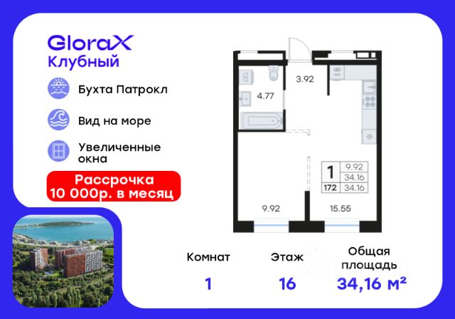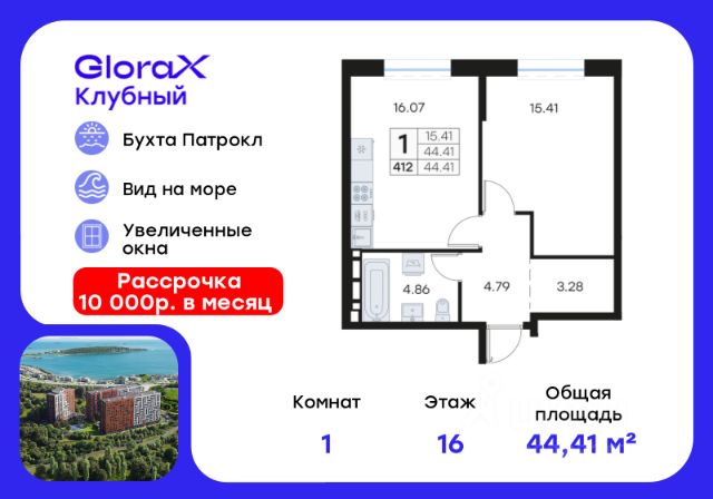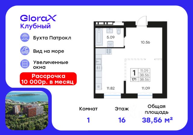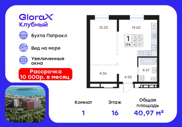 Продается 1-комн. квартира на 16-м этаже в квартале GloraX Клубный. GloraX Клубный - уникальный видовой проект с выделяющейся архитектурой в развитом районе Владивостока. Общая площадь лота составляет 32,46 кв. м, из которых 9,65 кв. м отведено под жилую и 11,93 кв. м под кухонную зону. Номер квартиры - 408.