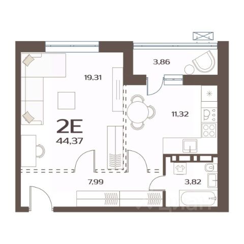 Уютное пространство для самостоятельной жизни Просторная прихожая 5,5 кв.м с местом для шкафа Кухня-столовая 16,8 кв.м место для ваших кулинарных экспериментов и отдыха за домашним кинотеатром Спальня 14,8 кв.м с выходом на лоджию, где можно наслаждаться свежим воздухом и красивым видом на окружающий пейзаж Гардеробная в спальне 2,8 кв.м позволит аккуратно разместить вещи, освободив место в комнате Ванная комната 4,5 кв.м с местом под стиральную машину