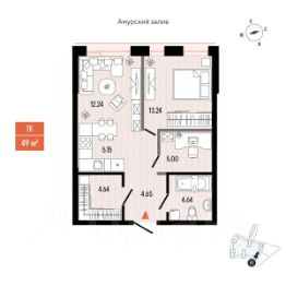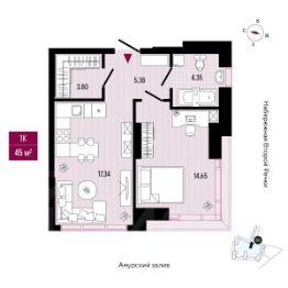 Продаётся 1-комнатная квартира в строящемся доме (Дом 2), срок сдачи: III-кв. 2026, общей площадью 41.59 кв.м., на 16 этаже. Новый жилой комплекс "Supreme" от застройщика "ДВ Капитал" расположен по адресу город Владивосток, Енисейская улица.