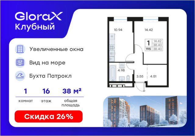 Продажа 1-комнатных квартир на 16 этаже в Приморском крае