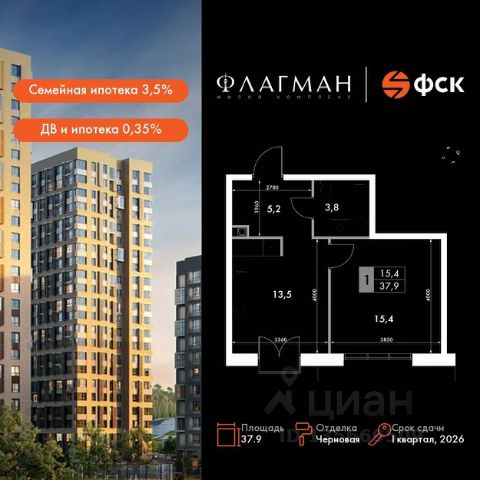 Прямая продажа от застройщика! Жилой Комплекс комфорт-класса. Продаётся 1-к квартира номер 457 общей площадью 37.9 кв.м. на 16-м этаже 22 этажного дома. Отделка Whitebox. Цена с учётом скидки! Особенности квартиры: - Линейная планировка - максимальная функциональность и удобство. - Линейная планировка - максимальная функциональность и удобство. - Просторная кухня - место для семейных ужинов и кулинарных экспериментов. Квартира с предчистовой отделкой (White box). Вам не придется заниматься черновыми и трудоёмкими работы, а чистовую отделку и дизайн - сделайте на свой вкус. Информация о комплексе: Современный жилой комплекс для тех, кто ценит комфорт, эстетику и личное пространство. Семь корпусов выполнены в уникальном дизайн-коде, с современной архитектурой от одного из лучших бюро страны. Приватные дворы с зонами отдыха на озелененной улице, развитая инфраструктура и транспортная доступность. Транспортная доступность: - 9 мин. пешком до детского сада - 7 мин. до школы - 5 мин. до взрослой поликлиники - 1 мин. до автобусной остановки Внутренняя инфраструктура: - Ландшафтный парк и пешеходный бульвар - Закрытые дворовые территории с детскими и спортивными площадками - Комфортные гостевые зоны и зоны ожидания - Кладовые и колясочные в каждом доме - Удобный вход без использования ступеней и пандусов - Комфортный одноэтажный паркинг с автоматической мойкой и коммерческие помещения на первых этажах