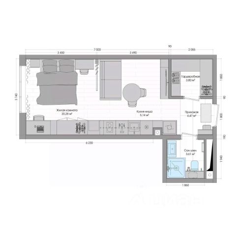 • ✅ Минимальная площадь: 29,1 м²