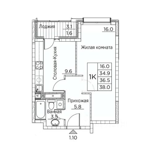• ✅ Минимальная площадь: 20,5 м²