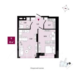 Продаётся 1-комнатная квартира в строящемся доме (Дом 3), срок сдачи: III-кв. 2026, общей площадью 30.68 кв.м., на 5 этаже. Новый жилой комплекс "Supreme" от застройщика "ДВ Капитал" расположен по адресу город Владивосток, Енисейская улица.