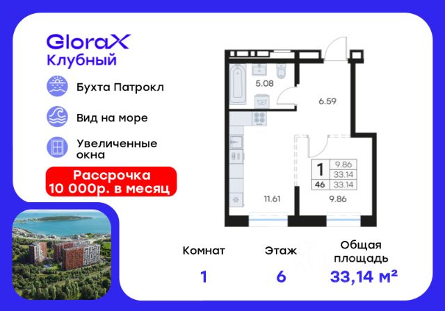 Продается 1-комн. квартира на 6-м этаже в квартале GloraX Клубный. GloraX Клубный - уникальный видовой проект с выделяющейся архитектурой в развитом районе Владивостока. Общая площадь лота составляет 33,95 кв. м, из которых 11,82 кв. м отведено под жилую и 12,34 кв. м под кухонную зону. Номер квартиры - 51.