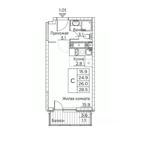 Квартира находится на среднем комфортном этаже. В доме два лифта разной грузоподъемности.