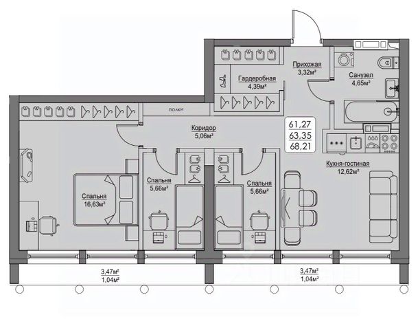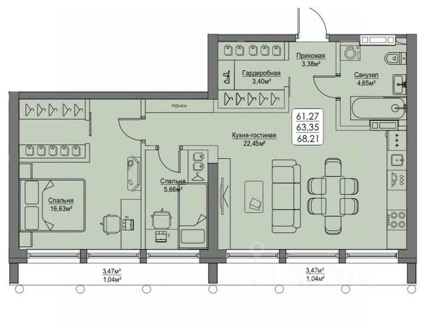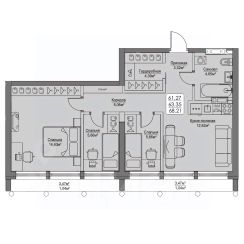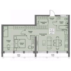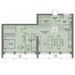 Уютное пространство для самостоятельной жизни Просторная прихожая 5,5 кв.м с местом для шкафа Кухня-столовая 16,8 кв.м место для ваших кулинарных экспериментов и отдыха за домашним кинотеатром Спальня 14,8 кв.м с выходом на лоджию, где можно наслаждаться свежим воздухом и красивым видом на окружающий пейзаж Гардеробная в спальне 2,8 кв.м позволит аккуратно разместить вещи, освободив место в комнате Ванная комната 4,5 кв.м с местом под стиральную машину