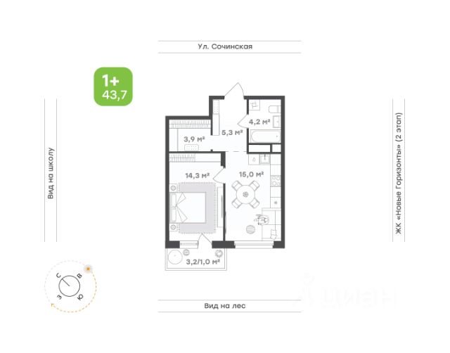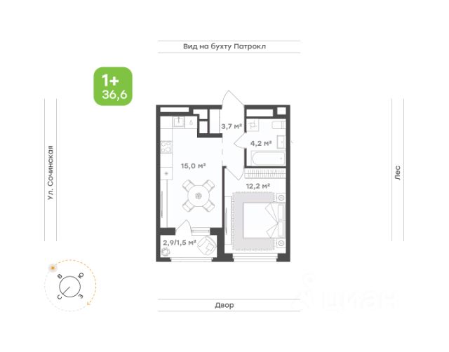 Функциональность для старта самостоятельной жизни Кухня-гостиная — просторное помещение, наполненное светом, гармонично объединяет обеденную зону и уютную гостиную. Выход на лоджию позволяет начать день со свежего воздуха и созерцания окружающего мира Личный уголок отдыха — спальня — разработана с акцентом на функциональность. Здесь предусмотрено место под систему хранения, что позволяет рационально организовать быт, а окно, выходящее в тихий двор, дарит атмосферу спокойствия и уединения Дополнительные зоны, такие как прихожая и санузел с местом под стиральную машину, завершают образ квартиры, где всё продумано для вашего удобства
