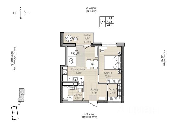 Продаётся 1-комн. квартира площадью 32,8 кв.м на 9 этаже 28 этажного дома (Корпус 2, Секция 2) проекта ПИК Борисенко 48. Светлый просторный подъезд на уровне земли, функциональная планировка, большие окна, предчистовая отделка. "Борисенко 48" - небольшой квартал в Первомайском районе, в 15 минутах пути на автомобиле от центра Владивостока. С верхних этажей откроется живописный вид на город и сопки. В проекте всего четыре дома и подземный паркинг, в который можно будет спуститься на лифте. Высота домов от 17 до 30 этажей - благодаря переменной этажности солнце будет лучше освещать двор и квартиры. На первых этажах откроются пекарни, кафе, магазины и другие сервисы - это удобно, когда внезапно закончится хлеб или захочется побаловать себя горячим кофе. Из каждого дома будет выход в уютный двор-парк - это закрытая территория для отдыха, где растут цветы и деревья, оборудованы детские и спортивные площадки. Рядом с "Борисенко 48" появится также детский сад для 150 малышей. В пешей доступности есть всё необходимое для комфортной жизни: школы, детские сады, поликлиника и магазины. До крупных торговых центров "Калина Молл" и "Луговая", а также супермаркета "Реми" - всего 5 минут на машине. А до озера на Сафонова, которое отлично подходит для прогулок и отдыха, можно дойти пешком за 9 минут. Живописная Леопардовая набережная - в 10 минутах на автомобиле. Из квартала можно будет выехать как на улицу Борисенко, так и на улицу Сафонова. Артикул 918446 (Застройщик ООО "СЗ "Юстина") Купить 1-комнатную квартиру в новостройке с большой кухней в Владивостоке.