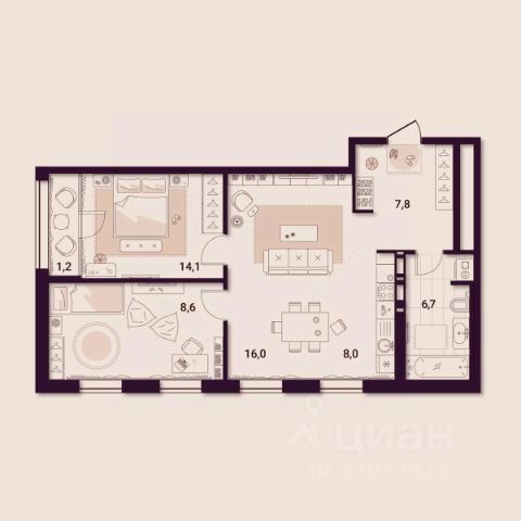 Продаётся 1-комнатная квартира в сданном доме (Механизаторов, 3 (Дом 3 секция 1)), срок сдачи: III-кв. 2025, общей площадью 55.88 кв.м., на 2 этаже. Современный архитектурный стиль, передовые технологии строительства, свободные планировки квартир, витражное остекление, респектабельная приватность (до 7 квартир на этаже) Витражное остекление квартир и балконов, светопрозрачные подъездные двери, проницаемые для взгляда, делают пространство TIMIRYAZEV PRIVATE PARK визуально открытым и максимально свободным. Вентилируемые фасады создают комфортный микроклимат внутри дома. Многослойная конструкция стен обеспечивает высокую звукоизоляцию и минимизирует расходы на отопление. На территории комплекса прогулочная зона со скамейками, беседкой, зоной барбекю, современная спортивная и безопасная детская игровая площадки. Территория TIMIRYAZEV PRIVATE PARK ограждена и находится под круглосуточной охраной, включая видеонаблюдение и пропускную систему. Освещение придомовой территории в ночное время. Безопасный двор без машин становится продолжением своего "домашнего" пространства, обеспечивает безопасность детей, отсутствие шума и загазованности. Во всех квартирах на 1 этаже есть собственные патио. Невысокое ограждение и живая изгородь создают приватное пространство для уединения. Патио на первом этаже - это отличный способ создать дополнительное пространство для отдыха и развлечений в вашем доме. Оно может стать уютным местом для проведения вечеринок, барбекю или просто для отдыха на свежем воздухе. Здесь здорово готовить рибай на гриле или наслаждаться тенью в жаркий летний день.