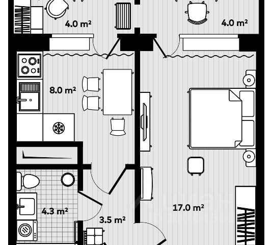 Продаётся 1-комнатная квартира в строящемся доме (Дом 1), срок сдачи: III-кв. 2026, общей площадью 43 кв.м., на 12 этаже. ЖК "Новый" - это: 2 дома с авторской архитектурой высотой 13 жилых этажей;Семейные 2-комнатные квартиры улучшенной планировки;Витражное остекление лоджий; 2 скоростных бесшумных лифта в каждом доме;Кладовые на нижних этажах;Открытая автостоянка;Благоустроенный двор;Современные системы безопасности и пожаротушения;Централизованное отопление;Индивидуальные счетчики на тепло и воду в каждой квартире.Уединенный семейный квартал, расположенный в живописном уголке экологически чистого района посёлка Новый. Здесь дома окружены небольшим лесным массивом, что создает особую атмосферу уюта и комфорта. Вся необходимая инфраструктура в шаговой доступности. ЖК "Новый" отличается гармоничной архитектурой, которая вписывается в окружающую природную среду. Большое значение уделено концептуальному благоустройству дворовой территории, чтобы жители могли наслаждаться не только красивыми видами, но и комфортным пространством для отдыха и досуга. Безопасность, современные входные группы и многообразие планировочных решений - всё это жилой комплекс "Новый".