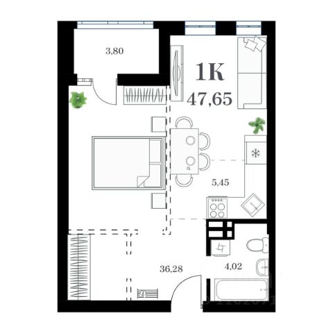 Уютное пространство для самостоятельной жизни Просторная прихожая 5,5 кв.м с местом для шкафа Кухня-столовая 16,8 кв.м место для ваших кулинарных экспериментов и отдыха за домашним кинотеатром Спальня 14,8 кв.м с выходом на лоджию, где можно наслаждаться свежим воздухом и красивым видом на окружающий пейзаж Гардеробная в спальне 2,8 кв.м позволит аккуратно разместить вещи, освободив место в комнате Ванная комната 4,4 кв.м с местом под стиральную машину