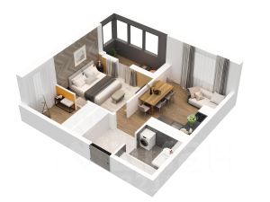 Умное зонирование на отдельную спальню ,уютную гостиную и практичную кухню .