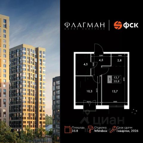 Продаётся 1-комн. квартира площадью 35,13 кв.м на 5 этаже 24 этажного дома (Корпус 2, Секция 2) проекта ПИК Снежный парк. Светлый просторный подъезд на уровне земли, функциональная планировка, большие окна, предчистовая отделка. Жилой квартал "Снежный парк" возводится в развитом микрорайоне Владивостока - Снеговой Пади. Рядом уже есть всё для комфортной жизни: 2 школы, детская и взрослая поликлиники, торговый центр и магазины. Проект будет состоять из 7 корпусов, высота которых от 24 до 29 этажей. Благодаря низкой плотности застройки жители будут чувствовать себя комфортно. За счёт переменной этажности в квартиры будет попадать ещё больше естественного света. Из окон последних этажей будет открываться панорамный вид на Амурский залив и лес. В квартирах предусмотрены большие окна, застеклённые балконы и лоджии - будет светло и уютно даже зимой. В жилом квартале появится уникальное общественное пространство с пешеходным бульваром и зонами для отдыха. На первых этажах откроются кафе, магазины и полезные сервисы, куда можно спуститься за горячим кофе или свежеиспечённым хлебом. Из каждого дома будет выход в уютный двор-парк с современными детскими и спортивными площадками. Здесь мы посадим цветы и деревья: будет приятно отдыхать или почитать книгу. Артикул 785363 (Застройщик ООО "СЗ ФОРМУЛА-ДВ")