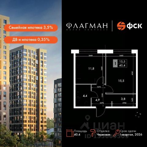Прямая продажа от застройщика! Жилой Комплекс комфорт-класса. Продаётся 1-к квартира номер 415 общей площадью 26.1 кв.м. на 13-м этаже 22 этажного дома. Отделка Whitebox. Цена с учётом скидки! Особенности квартиры: - Линейная планировка - максимальная функциональность и удобство. - Линейная планировка - максимальная функциональность и удобство. - Просторная ванная - место для расслабления и уединения. - Ниша под шкаф - компактное и удобное место для вещей. Квартира с предчистовой отделкой (White box). Вам не придется заниматься черновыми и трудоёмкими работы, а чистовую отделку и дизайн - сделайте на свой вкус. Информация о комплексе: Современный жилой комплекс для тех, кто ценит комфорт, эстетику и личное пространство. Семь корпусов выполнены в уникальном дизайн-коде, с современной архитектурой от одного из лучших бюро страны. Приватные дворы с зонами отдыха на озелененной улице, развитая инфраструктура и транспортная доступность. Транспортная доступность: - 9 мин. пешком до детского сада - 7 мин. до школы - 5 мин. до взрослой поликлиники - 1 мин. до автобусной остановки Внутренняя инфраструктура: - Ландшафтный парк и пешеходный бульвар - Закрытые дворовые территории с детскими и спортивными площадками - Комфортные гостевые зоны и зоны ожидания - Кладовые и колясочные в каждом доме - Удобный вход без использования ступеней и пандусов - Комфортный одноэтажный паркинг с автоматической мойкой и коммерческие помещения на первых этажах