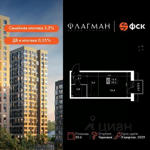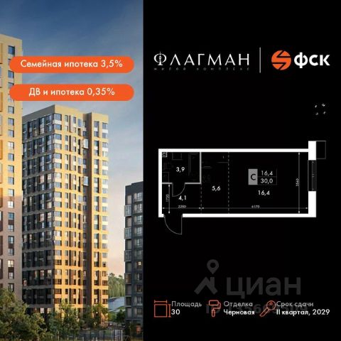 Прямая продажа от застройщика! Жилой Комплекс комфорт-класса. Продаётся квартира-студия номер 11 общей площадью 26.2 кв.м. на 2-м этаже 30 этажного дома. Отделка Whitebox. Цена с учётом скидки! Особенности квартиры: - Линейная планировка - максимальная функциональность и удобство. Квартира с предчистовой отделкой (White box). Вам не придется заниматься черновыми и трудоёмкими работы, а чистовую отделку и дизайн - сделайте на свой вкус. Информация о комплексе: Современный жилой комплекс для тех, кто ценит комфорт, эстетику и личное пространство. Семь корпусов выполнены в уникальном дизайн-коде, с современной архитектурой от одного из лучших бюро страны. Приватные дворы с зонами отдыха на озелененной улице, развитая инфраструктура и транспортная доступность. Транспортная доступность: - 9 мин. пешком до детского сада - 7 мин. до школы - 5 мин. до взрослой поликлиники - 1 мин. до автобусной остановки Внутренняя инфраструктура: - Ландшафтный парк и пешеходный бульвар - Закрытые дворовые территории с детскими и спортивными площадками - Комфортные гостевые зоны и зоны ожидания - Кладовые и колясочные в каждом доме - Удобный вход без использования ступеней и пандусов - Комфортный одноэтажный паркинг с автоматической мойкой и коммерческие помещения на первых этажах