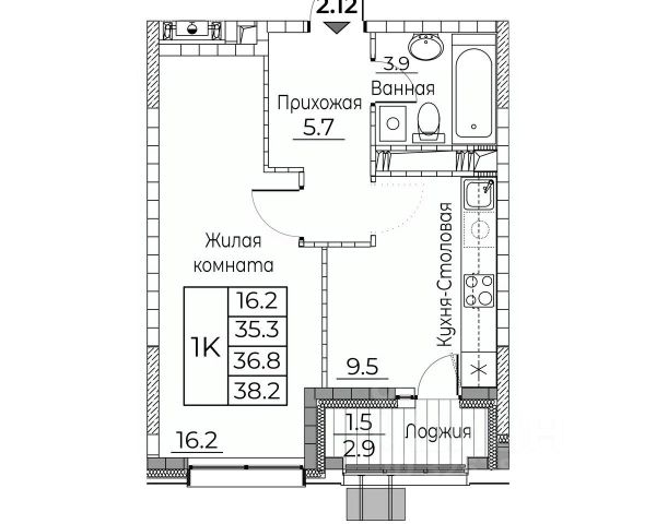 Общая площадь квартиры — 38.2 кв. м, этаж 9 из 23.