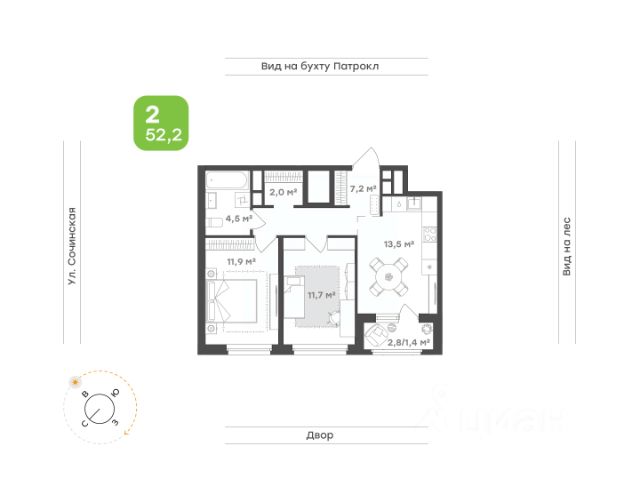 Продаётся 2-комн. квартира площадью 52 кв.м на 26 этаже 28 этажного дома (Корпус 2, Секция 2) проекта ПИК Борисенко 48. Светлый просторный подъезд на уровне земли, функциональная планировка, большие окна, предчистовая отделка. "Борисенко 48" - небольшой квартал в Первомайском районе, в 15 минутах пути на автомобиле от центра Владивостока. С верхних этажей откроется живописный вид на город и сопки. В проекте всего четыре дома и подземный паркинг, в который можно будет спуститься на лифте. Высота домов от 17 до 30 этажей - благодаря переменной этажности солнце будет лучше освещать двор и квартиры. На первых этажах откроются пекарни, кафе, магазины и другие сервисы - это удобно, когда внезапно закончится хлеб или захочется побаловать себя горячим кофе. Из каждого дома будет выход в уютный двор-парк - это закрытая территория для отдыха, где растут цветы и деревья, оборудованы детские и спортивные площадки. Рядом с "Борисенко 48" появится также детский сад для 150 малышей. В пешей доступности есть всё необходимое для комфортной жизни: школы, детские сады, поликлиника и магазины. До крупных торговых центров "Калина Молл" и "Луговая", а также супермаркета "Реми" - всего 5 минут на машине. А до озера на Сафонова, которое отлично подходит для прогулок и отдыха, можно дойти пешком за 9 минут. Живописная Леопардовая набережная - в 10 минутах на автомобиле. Из квартала можно будет выехать как на улицу Борисенко, так и на улицу Сафонова. Артикул 919506 (Застройщик ООО "СЗ "Юстина") Продается 2-комнатная квартира до 10 млн. рублей в Приморском крае.