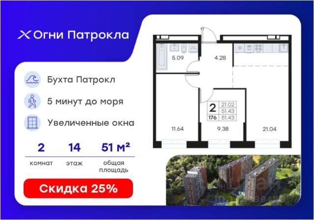 DNV-03-02-08-006-098 Современная 2-комнатная квартира евроформата с большой просторной спальней и предчистовой отделкой в жилом комплексе "ДОМ на Востоке". Общая площадь 49 м2. Срок сдачи 4 кв. 2025 г. Монолитный дом. "ДОМ на Востоке" жилой квартал с авторской архитектурой от известного бюро KAMEN, благоустроенной территорией и собственной развитой инфраструктурой. Это флагманский проект от государственного застройщика ДОМ.РФ Девелопмент, расположенного в сердце живописной бухты Патрокл. Проект находится в перспективном, быстроразвивающемся районе города со всей инфраструктурой на берегу залива. Всего 8 минут пешком и вы на Леопардовой набережной совершаете променад или любуетесь завораживающими закатами и рассветами. До центра города и крупных торговых центров легко добраться за 20 минут на автомобиле. Преимущества лота - Высокий потолок 2,87 м в чистоте - Гардеробная комната - Большой санузел 4,4 м2 - Большая светлая спальня 17,6 м2 - 2 корзины для кондиционера Отделка: В квартире будет выполнена предчистовая отделка. - Возведены перегородки из керамзита-цементных блоков - Оштукатурены стены - Выполнена стяжка пола - Произведена разводка трубопроводов, электричества, вентиляции и кондиционирования. Разводка отопления осуществляется внутри стяжки (горизонтальная), выводы под радиаторы выведены из стены. - Установлены радиаторы с терморегулятором - Выполнена шумоизоляция по полу - Установлены двухкамерные стеклопакеты и металлическая входная дверь - Заведен интернет кабель до слаботочного щита в квартире - Проведены коммуникации под установку кондиционера К моменту выдачи ключей все шумные работы будут завершены. Вам останется самая приятная часть ремонта выбор покрытия стен и пола, сантехники, мебели и аксессуаров. Инфраструктура На первых этажах домов будет все необходимое для жизни: магазины, кафе, аптеки, салоны красоты и многое другое. А для семей с детьми предусмотрены детские сады, безопасные игровые площадки и игровые комнаты. Паркинг: подземный отапливаемый с видеонаблюдением Для удобства жителей комплекса предусмотрен теплый паркинг в доме. Теперь не придется искать место для парковки, а также чистить автомобиль от снега или прогревать его в холодное время года. В паркинге также расположены кладовые помещения для хранения сезонных вещей и спортивного инвентаря. Условия покупки Продажа от надёжного государственного застройщика ДОМ.РФ Девелопмент с использованием эскроу-счетов. 100% оплата или ипотека. Сейчас действуют особые предложения по льготной ипотеке на период строительства. Продается 2-комнатная квартира 50 м2 в Владивостоке.