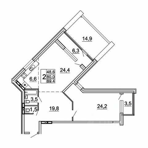 Три стороны света дарят квартире солнечный свет в течение всего дня.