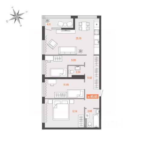 Продаётся 2-комнатная квартира в строящемся доме (Дом 1), срок сдачи: III-кв. 2026, общей площадью 56.63 кв.м., на 5 этаже. Новый жилой комплекс "Прогрессивный" от Специализированного застройщика "ДДВ" расположен по адресу: г. Арсеньев, по ул. Калининская.