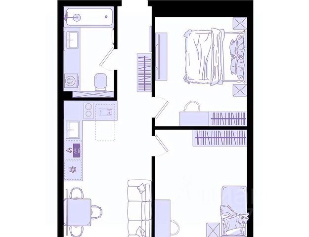 Уютное пространство для самостоятельной жизни Просторная прихожая 5,5 кв.м с местом для шкафа Кухня-столовая 16,8 кв.м место для ваших кулинарных экспериментов и отдыха за домашним кинотеатром Спальня 14,8 кв.м с выходом на лоджию, где можно наслаждаться свежим воздухом и красивым видом на окружающий пейзаж Гардеробная в спальне 2,8 кв.м позволит аккуратно разместить вещи, освободив место в комнате Ванная комната 4,5 кв.м с местом под стиральную машину
