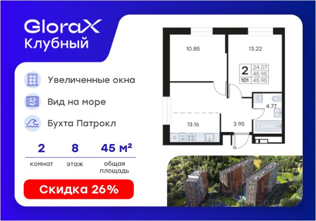DNV-06-02-04-006-067 Современная 2-комнатная квартира классического формата с большой светлой гостиной в жилом комплексе "ДОМ на Востоке". Общая площадь 51,4 м2. Срок сдачи 3 кв. 2027 г. Монолитный дом. "ДОМ на Востоке" жилой квартал с авторской архитектурой от известного бюро KAMEN, благоустроенной территорией и собственной развитой инфраструктурой. Это флагманский проект от государственного застройщика ДОМ.РФ Девелопмент, расположенного в сердце живописной бухты Патрокл. Проект находится в перспективном, быстроразвивающемся районе города со всей инфраструктурой на берегу залива. Всего 8 минут пешком и вы на Леопардовой набережной совершаете променад или любуетесь завораживающими закатами и рассветами. До центра города и крупных торговых центров легко добраться за 20 минут на автомобиле. Преимущества лота - Высокий потолок 2,9 м - Гардеробная комната - Большая кухня - Радиусное остекление панорамные виды - Повышенная инсоляция - 4 окна в кухне-гостиной - 2 корзины для кондиционера Отделка: Квартира сдается в черновой отделке. Инфраструктура На первых этажах домов будет все необходимое для жизни: магазины, кафе, аптеки, салоны красоты и многое другое. А для семей с детьми предусмотрены детские сады, безопасные игровые площадки и игровые комнаты. Паркинг: подземный отапливаемый с видеонаблюдением Для удобства жителей комплекса предусмотрен теплый паркинг в доме. Теперь не придется искать место для парковки, а также чистить автомобиль от снега или прогревать его в холодное время года. В паркинге также расположены кладовые помещения для хранения сезонных вещей и спортивного инвентаря. Условия покупки Продажа от надёжного государственного застройщика ДОМ.РФ Девелопмент с использованием эскроу-счетов. 100% оплата или ипотека. Сейчас действуют особые предложения по льготной ипотеке на период строительства.