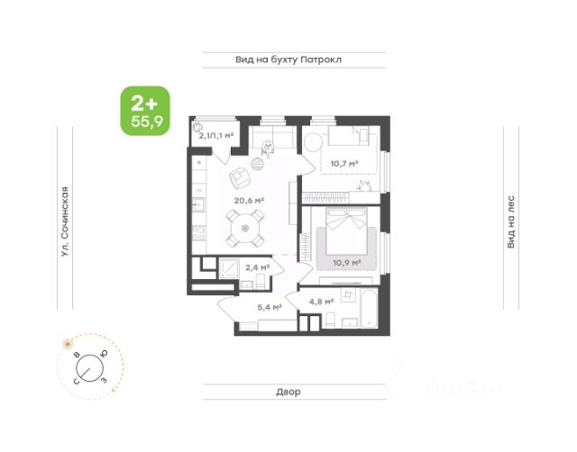 • Квартиры с панорамными видами на бухту Патрокл, маяк Басаргина и остров Русский