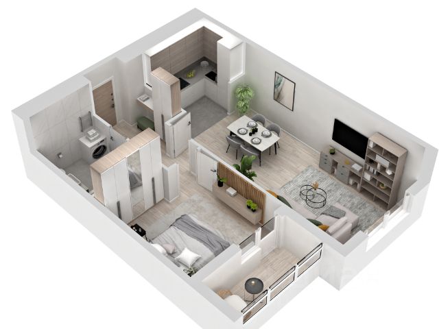 - Квартира с полностью готовой современной отделкой в светлых тонах.