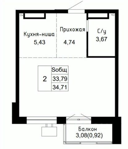 • ✅ Минимальная площадь: 34,7 м²
