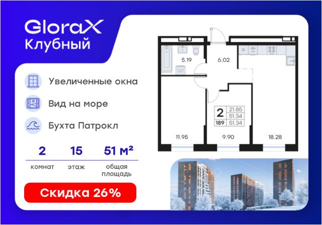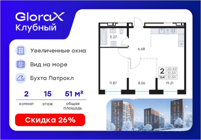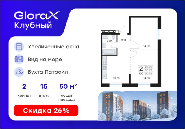 DNV-07-01-15-008-112 Современная 2-комнатная квартира классического формата с большой светлой гостиной в жилом комплексе "ДОМ на Востоке". Срок сдачи 3 кв. 2027 г. Монолитный дом. "ДОМ на Востоке" жилой квартал с авторской архитектурой от известного бюро KAMEN, благоустроенной территорией и собственной развитой инфраструктурой. Это флагманский проект от государственного застройщика ДОМ.РФ Девелопмент, расположенного в сердце живописной бухты Патрокл. Проект находится в перспективном, быстроразвивающемся районе города со всей инфраструктурой на берегу залива. Всего 8 минут пешком и вы на Леопардовой набережной совершаете променад или любуетесь завораживающими закатами и рассветами. До центра города и крупных торговых центров легко добраться за 20 минут на автомобиле. Преимущества лота - Высокий потолок 2,9 м - Большая кухня - 2 санузла панорамные виды - Повышенная инсоляция Отделка: Квартира сдается в черновой отделке. Инфраструктура На первых этажах домов будет все необходимое для жизни: магазины, кафе, аптеки, салоны красоты и многое другое. А для семей с детьми предусмотрены детские сады, безопасные игровые площадки и игровые комнаты. Паркинг: подземный отапливаемый с видеонаблюдением Для удобства жителей комплекса предусмотрен теплый паркинг в доме. Теперь не придется искать место для парковки, а также чистить автомобиль от снега или прогревать его в холодное время года. В паркинге также расположены кладовые помещения для хранения сезонных вещей и спортивного инвентаря. Условия покупки Продажа от надёжного государственного застройщика ДОМ.РФ Девелопмент с использованием эскроу-счетов. 100% оплата или ипотека. Сейчас действуют особые предложения по льготной ипотеке на период строительства.