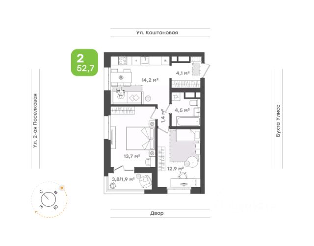 Продаётся 2-комн. квартира площадью 50,2 кв.м на 15 этаже 30 этажного дома (Корпус 4, Секция 4) проекта ПИК Борисенко 48. Светлый просторный подъезд на уровне земли, функциональная планировка, большие окна, c отделкой. "Борисенко 48" - небольшой квартал в Первомайском районе, в 15 минутах пути на автомобиле от центра Владивостока. С верхних этажей откроется живописный вид на город и сопки. В проекте всего четыре дома и подземный паркинг, в который можно будет спуститься на лифте. Высота домов от 17 до 30 этажей - благодаря переменной этажности солнце будет лучше освещать двор и квартиры. На первых этажах откроются пекарни, кафе, магазины и другие сервисы - это удобно, когда внезапно закончится хлеб или захочется побаловать себя горячим кофе. Из каждого дома будет выход в уютный двор-парк - это закрытая территория для отдыха, где растут цветы и деревья, оборудованы детские и спортивные площадки. Рядом с "Борисенко 48" появится также детский сад для 150 малышей. В пешей доступности есть всё необходимое для комфортной жизни: школы, детские сады, поликлиника и магазины. До крупных торговых центров "Калина Молл" и "Луговая", а также супермаркета "Реми" - всего 5 минут на машине. А до озера на Сафонова, которое отлично подходит для прогулок и отдыха, можно дойти пешком за 9 минут. Живописная Леопардовая набережная - в 10 минутах на автомобиле. Из квартала можно будет выехать как на улицу Борисенко, так и на улицу Сафонова. Артикул 919018 (Застройщик ООО "СЗ "Юстина")
