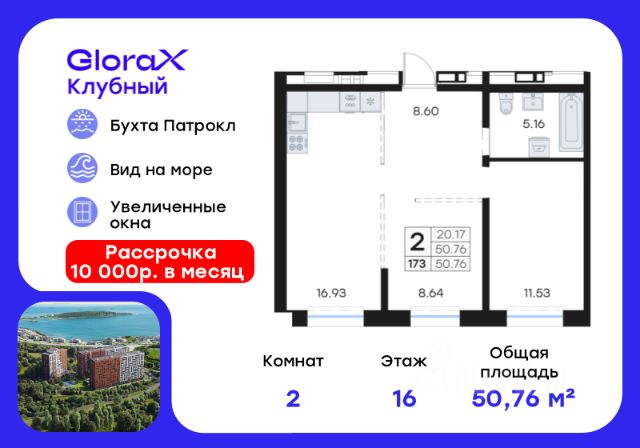 Квартира 157 на 16 этаже Отделка: черновая В проекте доступна рассрочка на 3 года от застройщика! Подробности уточняйте в отделе продаж. 1 очередь - квартиры от 39,73 м2 до 86,48 м2 2 очередь - квартиры от 56,24 м2 до 78,09 м2 Преимущества: - восхитительные панорамные виды на бухту Соболь и бухту Патрокл; - строим свой детский сад; - концепция "город в городе" все необходимые для жизни магазины и сервисы на территории ЖК; - планировочные решения на любой вкус и бюджет; - кладовые и парковочные места; - квартиры формата Smart Vision: максимум солнечного света! - детские и спортивные площадки для детей всех возрастов; - пляжи и прогулочные зоны в пешей доступности; - охраняемая территория с видеонаблюдением и КПП; - высокая транспортная доступность; - 6 лифтов на этаже.