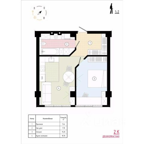 Уютное пространство для самостоятельной жизни Просторная прихожая 5,5 кв.м с местом для шкафа Кухня-столовая 16,8 кв.м место для ваших кулинарных экспериментов и отдыха за домашним кинотеатром Спальня 14,8 кв.м с выходом на лоджию, где можно наслаждаться свежим воздухом и красивым видом на окружающий пейзаж Гардеробная в спальне 2,8 кв.м позволит аккуратно разместить вещи, освободив место в комнате Ванная комната 4,5 кв.м с местом под стиральную машину