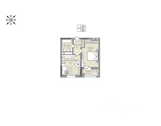 Уютное пространство для самостоятельной жизни Просторная прихожая 4,5 кв.м Кухня-столовая 12,4 кв.м место для ваших кулинарных экспериментов Спальня 14,8 кв.м с выходом на лоджию, где можно наслаждаться свежим воздухом и красивым видом на окружающий пейзаж