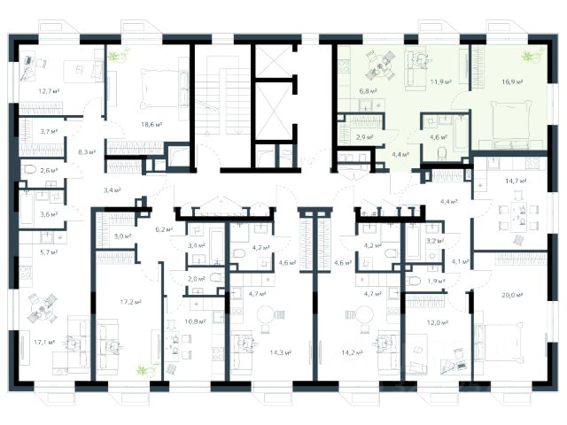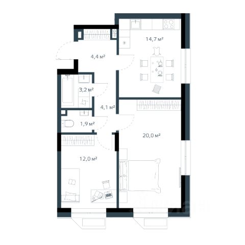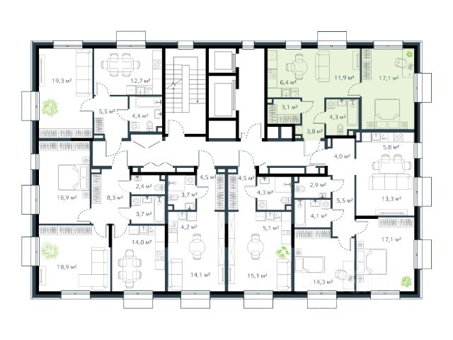 • Планировочные решения под любой жизненный сценарий от 23 до 67 м²