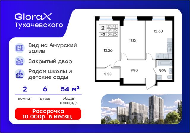 Прямая продажа от застройщика! Жилой Комплекс комфорт-класса. Продаётся 2-к квартира номер 53 общей площадью 61.8 кв.м. на 6-м этаже 30 этажного здания. Отделка Whitebox. Цена с учётом скидки. Особенности квартиры: - Угловая планировка - больше пространства для ваших идей. - Увеличенное количество окон - дополнительное освещение и свежий воздух. - Гостевой санузел - комфорт и удобство для ваших гостей. - Можно оборудовать рабочее место - комфорт для работы и учёбы. - Просторная кухня - место для семейных ужинов и кулинарных экспериментов. - Балкон - открытое пространство для отдыха. Квартира с предчистовой отделкой (White box). Вам не придется заниматься черновыми и трудоёмкими работы, а чистовую отделку и дизайн - сделайте на свой вкус. Информация о комплексе: "Флагман" - современный жилой комплекс для тех, кто ценит комфорт, эстетику и личное пространство. Корпуса, выполненные в едином архитектурном коде, создают выразительный силуэт и формируют гармоничное городское пространство. Современная архитектура от одного из ведущих бюро страны сочетает лаконичность форм и внимание к деталям. Приватные дворы, озеленённые улицы и продуманная инфраструктура делают жизнь здесь по-настоящему комфортной.Благодаря удобному расположению и транспортной доступности, вы легко доберётесь в любую часть города. Транспортная доступность: - 9 мин. пешком до детского сада - 7 мин. до школы - 5 мин. до взрослой поликлиники - 1 мин. до автобусной остановки Внутренняя инфраструктура: Каждая деталь продумана для вашего удобства. Для прогулок и отдыха предусмотрен ландшафтный парк и пешеходный бульвар. Закрытые дворы оснащены детскими и спортивными площадками, а в каждом доме предусмотрены кладовые и колясочные. Комфортные гостевые зоны и зоны ожидания создают атмосферу уюта уже с первых шагов в дом. Все корпуса имеют удобный вход без ступеней и пандусов, обеспечивая лёгкий доступ для жителей любого возраста. Для автомобилистов предусмотрен одноэтажный паркинг с автоматической мойкой, а на первых этажах расположены коммерческие помещения, обеспечивающие повседневные потребности жителей.